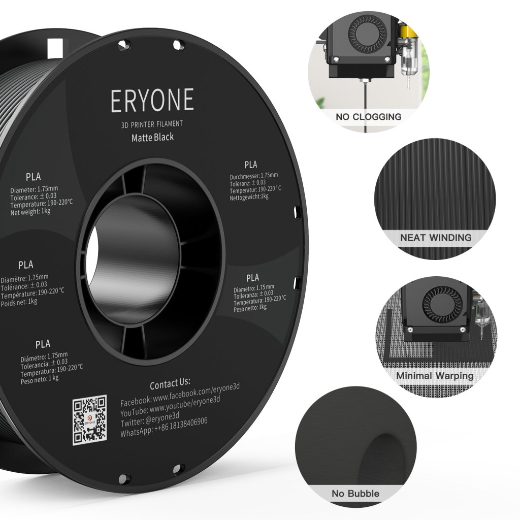 Az Eryone Matt PLA filament könnyen nyomtatható, és a legtöbb FDM típusú 3D nyomtatóval kompatibilis. Nyomtatási hőmérséklete általában 190-220 °C között van, ami minimalizálja a deformáció esélyét, és biztosítja a precíz, részletgazdag nyomtatási eredményeket. Az anyag 1,75 mm átmérőjű, amely egyenletes és zökkenőmentes adagolást tesz lehetővé.
