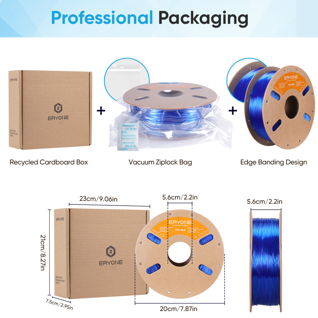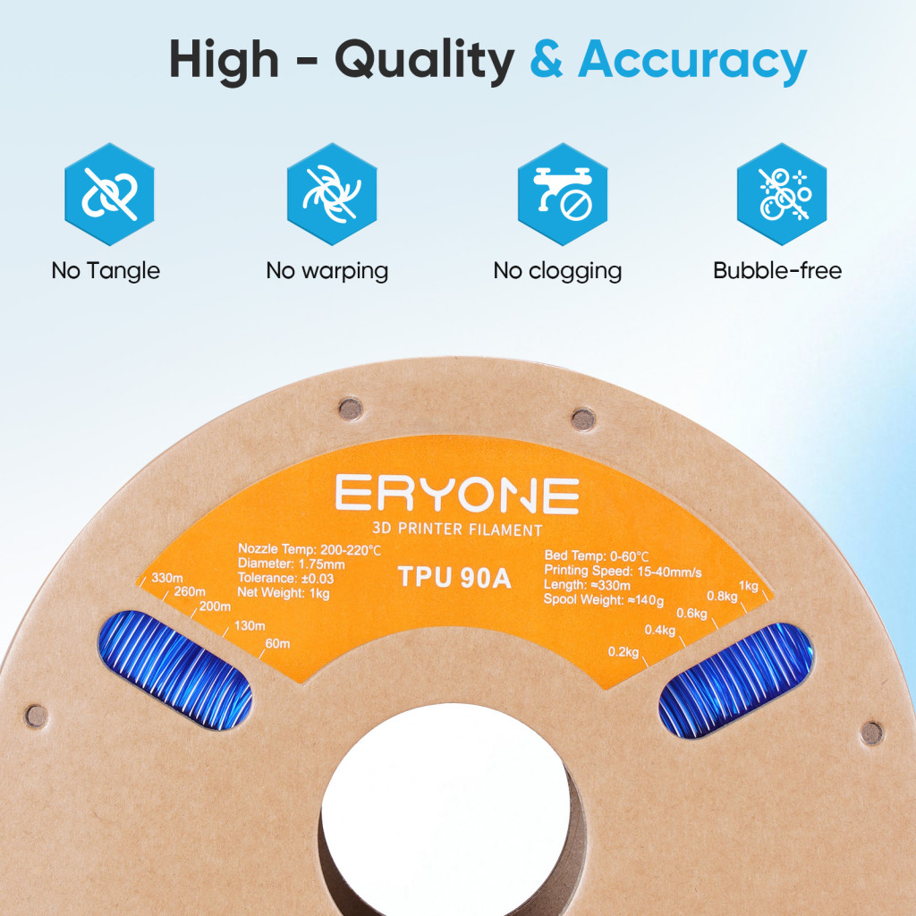 Eryone TPU 90A filament - Transparent Blue (1.75mm - 1kg)